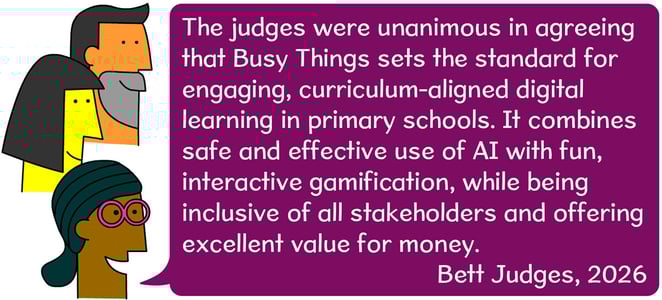 The team at Busy Things is celebrating a major milestone following the announcement of the Bett Awards 2026, where they took home the prestigious trophy for Primary Digital Learning Product – Wider Curriculum